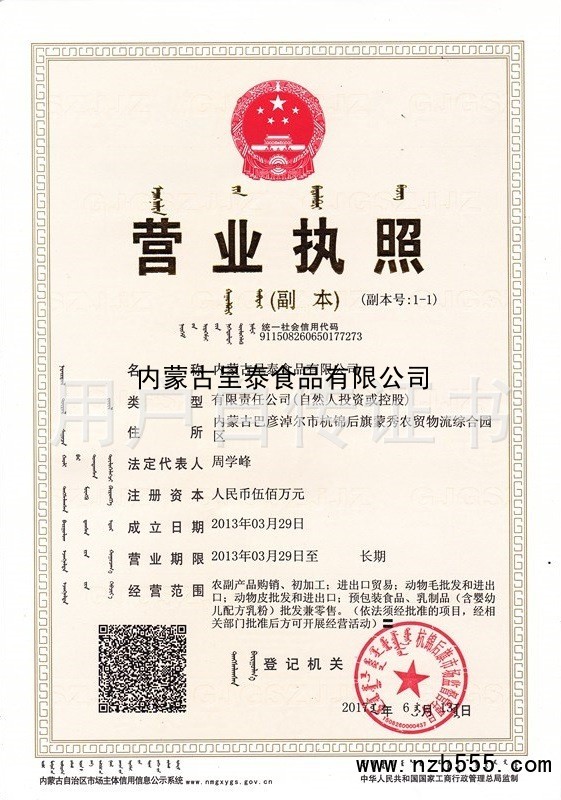內蒙古呈泰食品有限公司