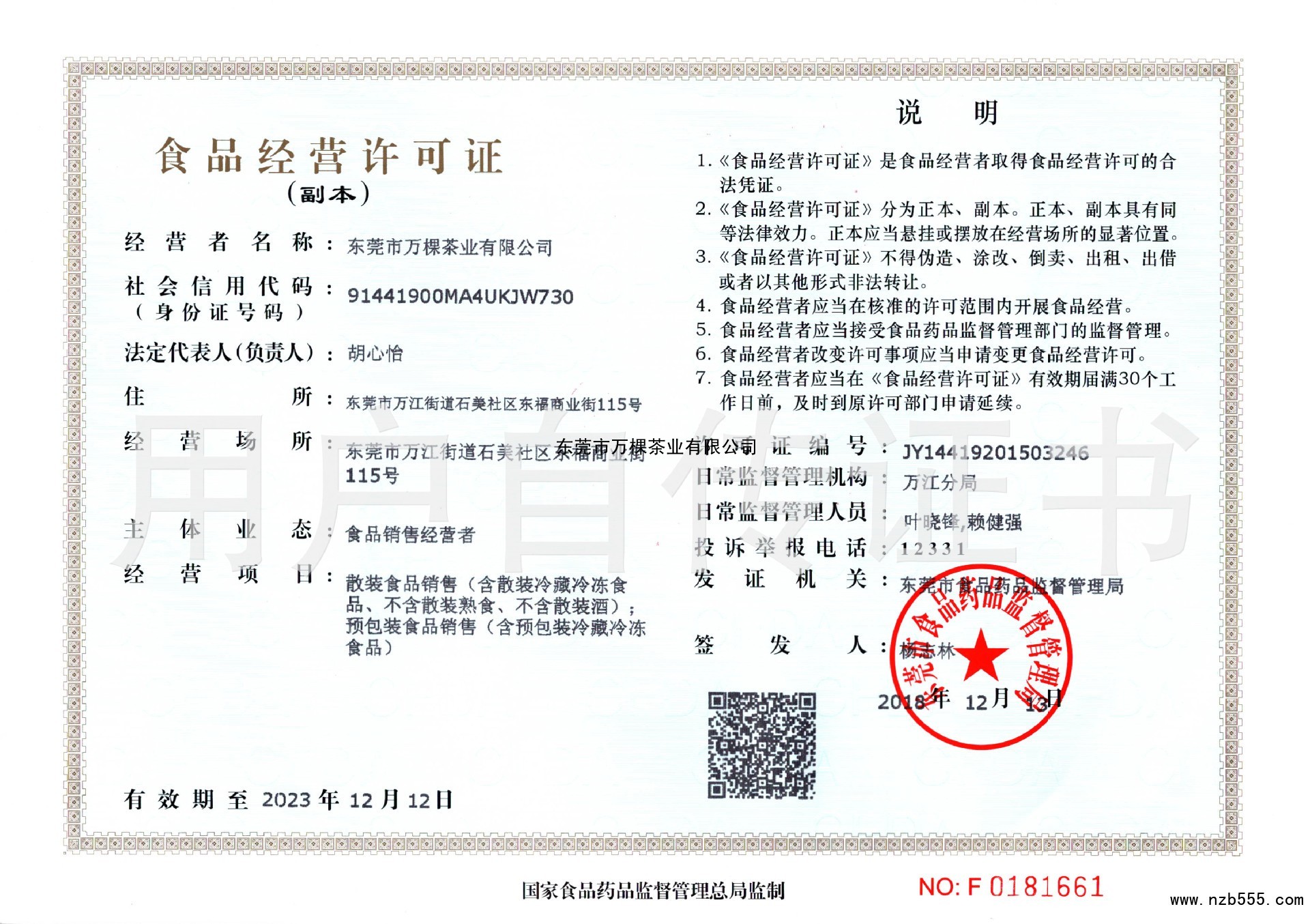 食品流通許可證(除乳制品、嬰幼兒配方乳粉、酒之外的流通許可證)