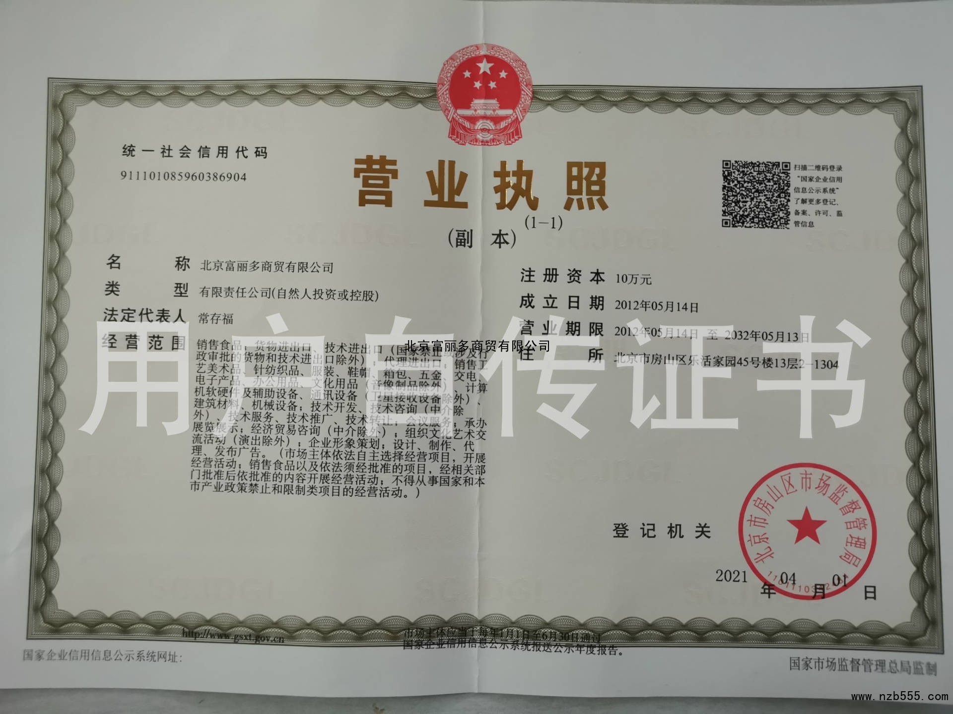 榮譽(yù)資質(zhì) 北京富麗多商貿(mào)有限公司