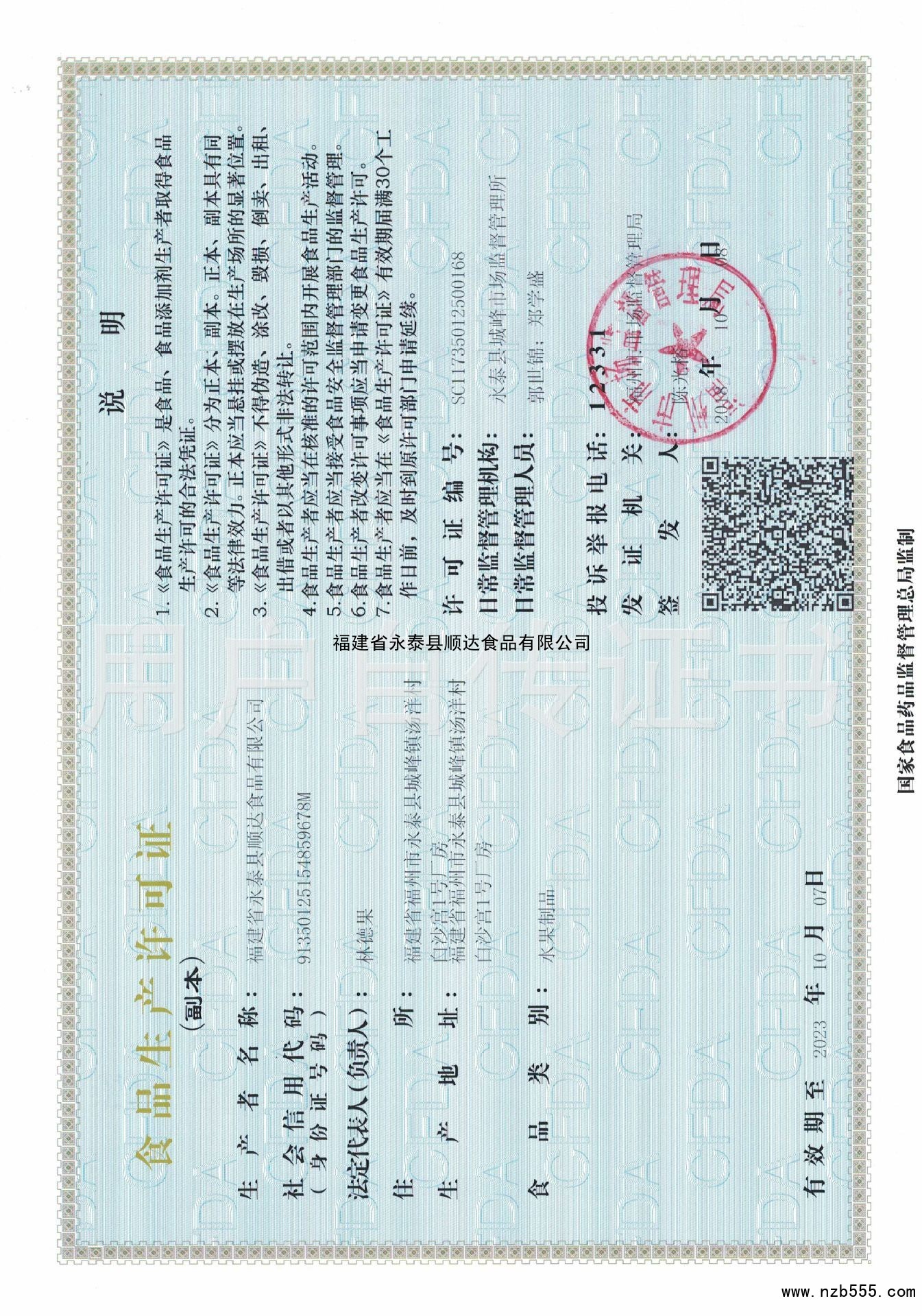 榮譽(yù)資質(zhì) 食品生產(chǎn)許可證(除乳制品、嬰幼兒配方乳粉、酒之外的生產(chǎn)許可證)