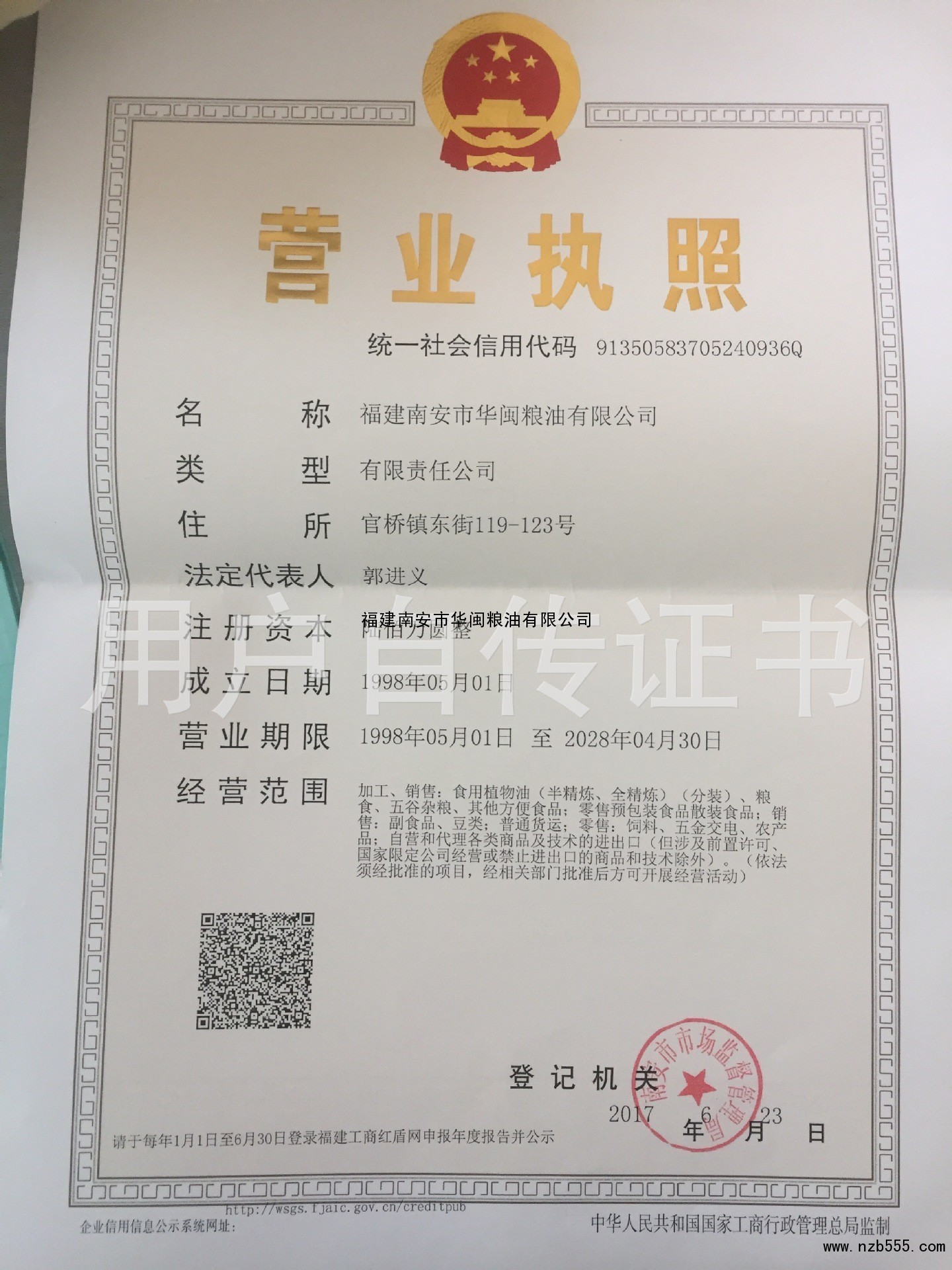 | 發(fā)證機(jī)構(gòu): | 南安市市場監(jiān)督管理局 | 發(fā)證時(shí)間 : | 2017-06-23 |