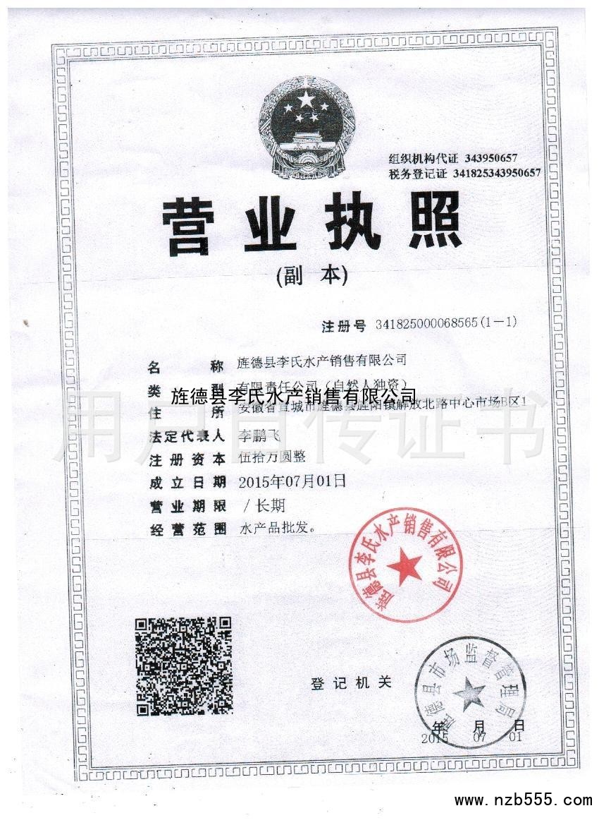 榮譽(yù)資質(zhì) 旌德縣李氏水產(chǎn)銷售有限公司