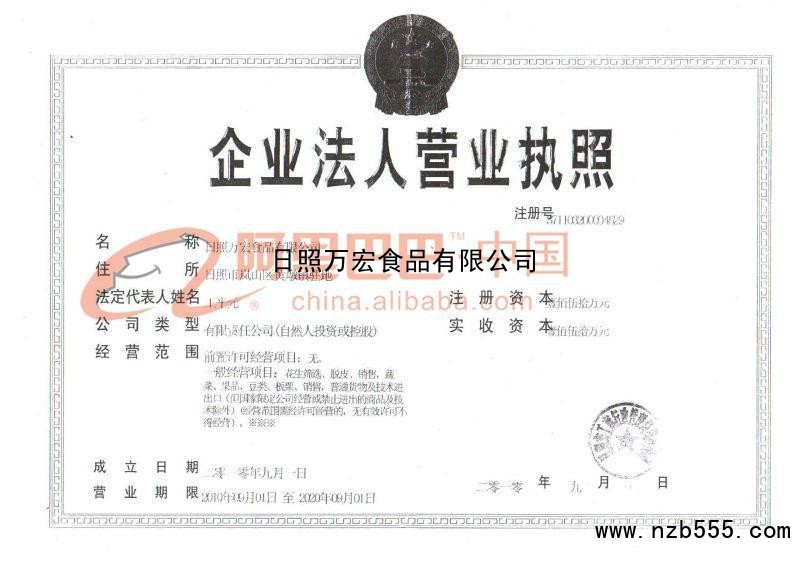 榮譽(yù)資質(zhì) 日照萬宏食品有限公司