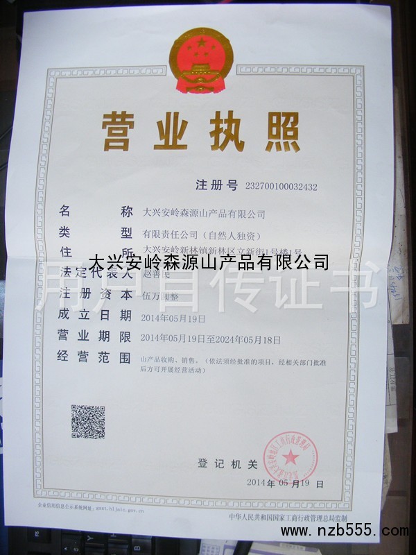 | 發(fā)證機(jī)構(gòu): | 黑龍江省大興安嶺地區(qū)工商行政管理局 | 發(fā)證時(shí)間 : | 2015-05-19 |