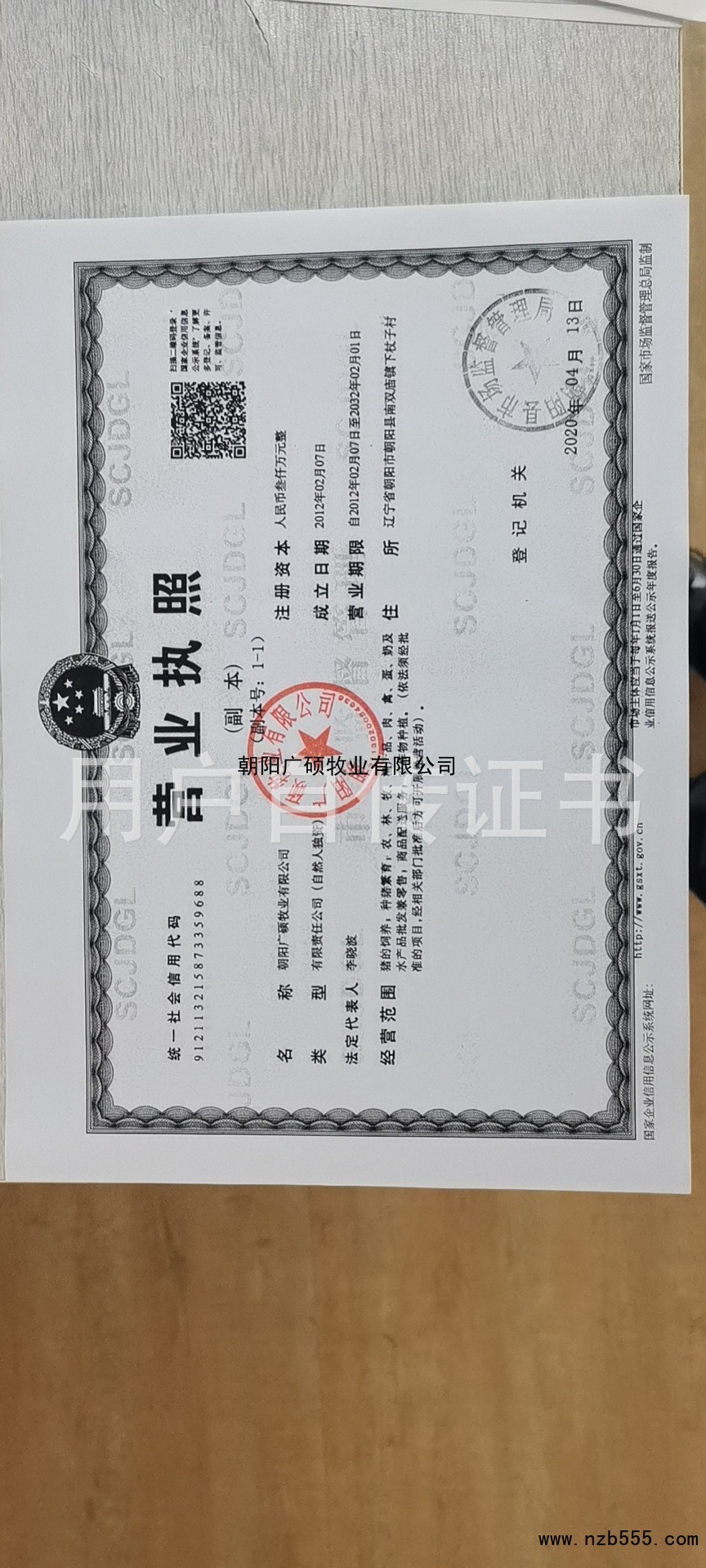 榮譽(yù)資質(zhì) 朝陽廣碩牧業(yè)有限公司