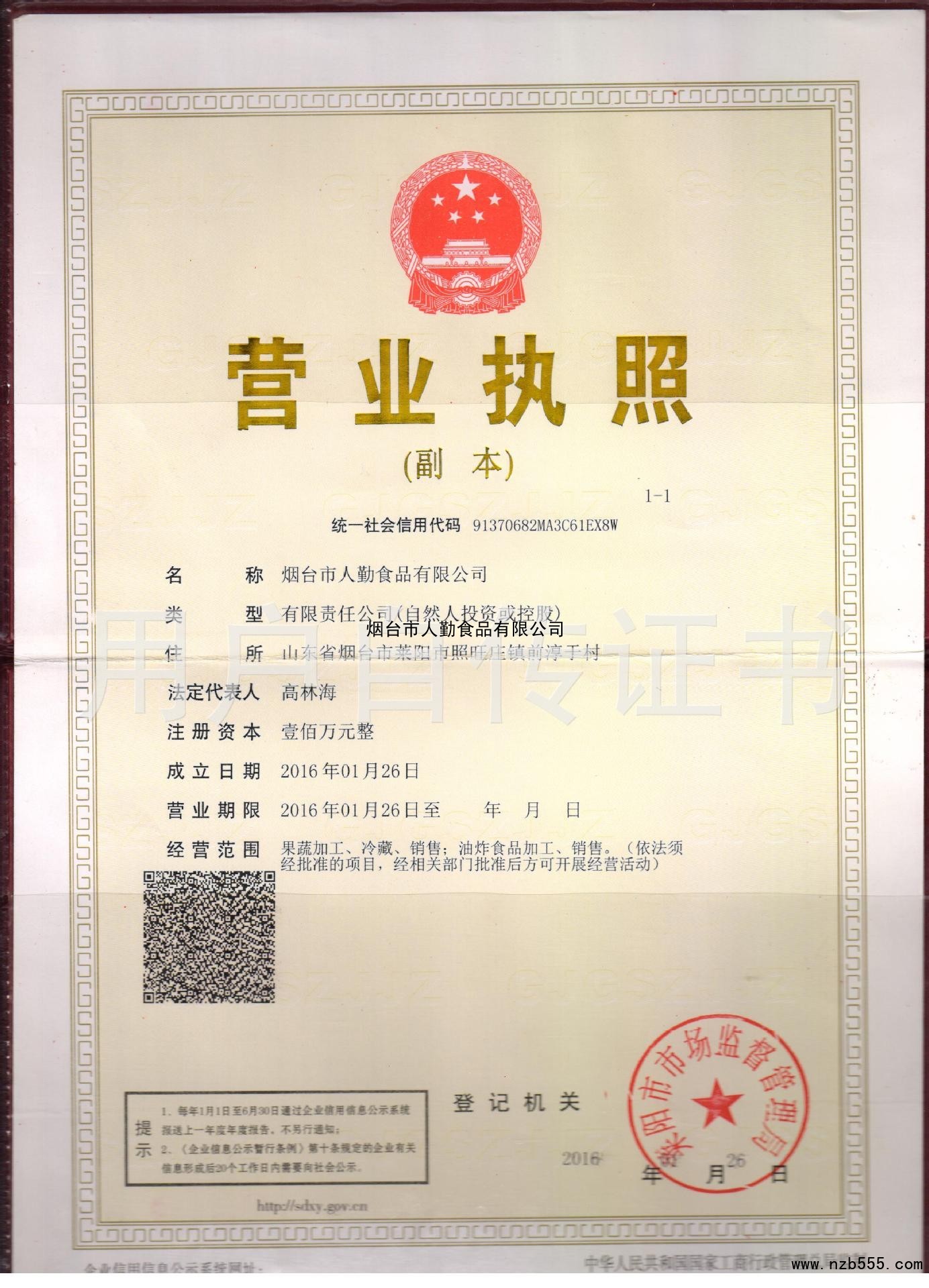 榮譽(yù)資質(zhì) 煙臺(tái)市人勤食品有限公司