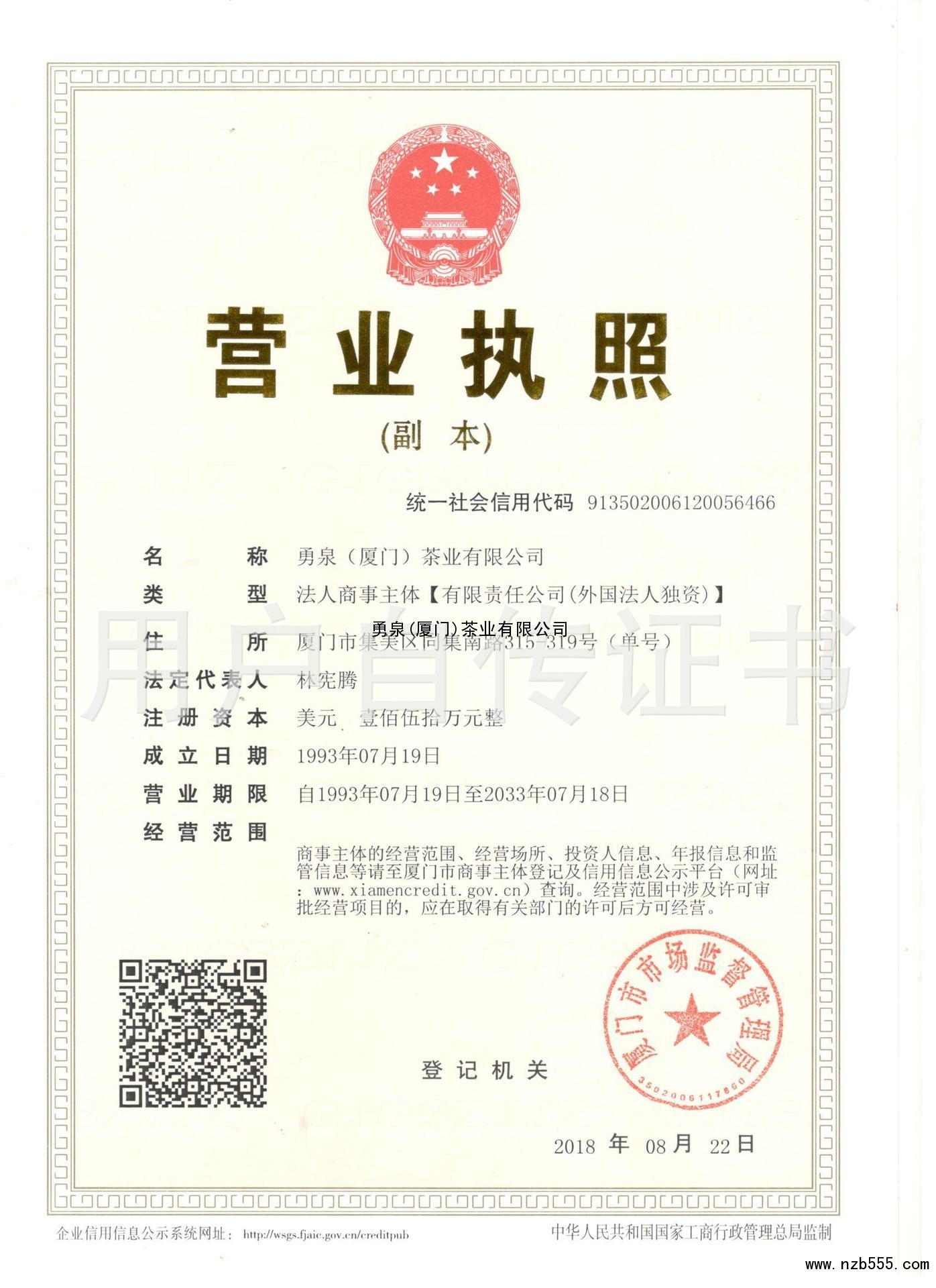 | 發(fā)證機(jī)構(gòu): | 廈門市市場監(jiān)督管理局 | 發(fā)證時間 : | 2018-08-22 |