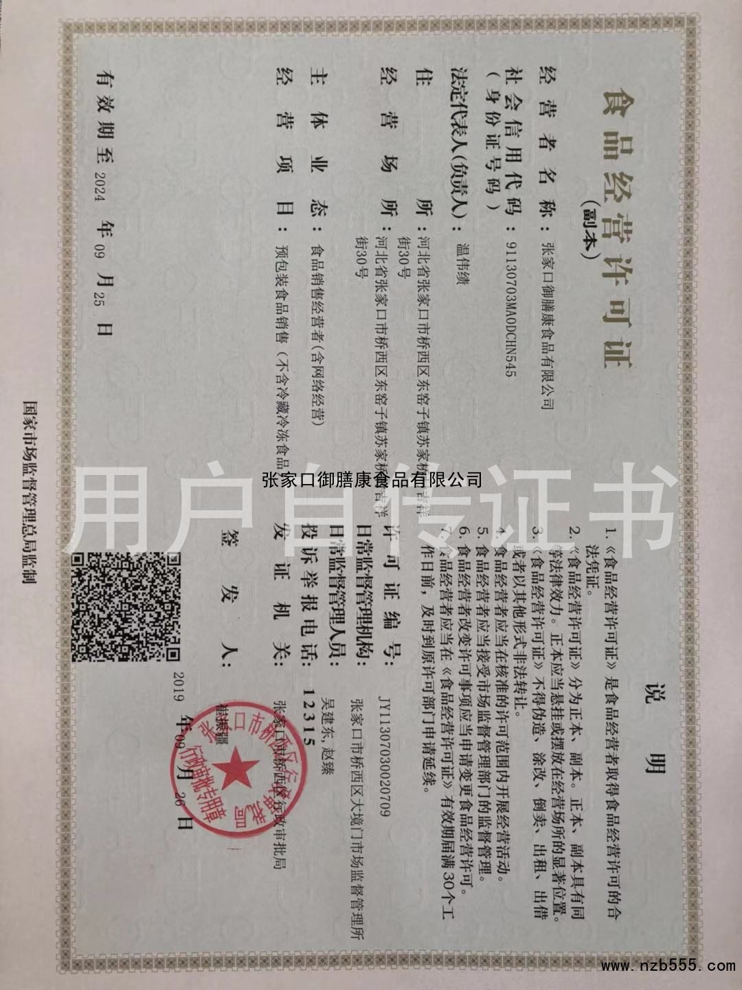 食品經營許可證(除乳制品、嬰幼兒配方乳粉、酒之外的生產許可證)