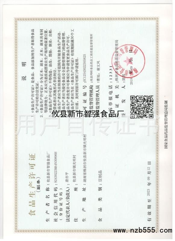 榮譽(yù)資質(zhì) 食品生產(chǎn)許可證(除乳制品、嬰幼兒配方乳粉、酒之外的生產(chǎn)許可證)