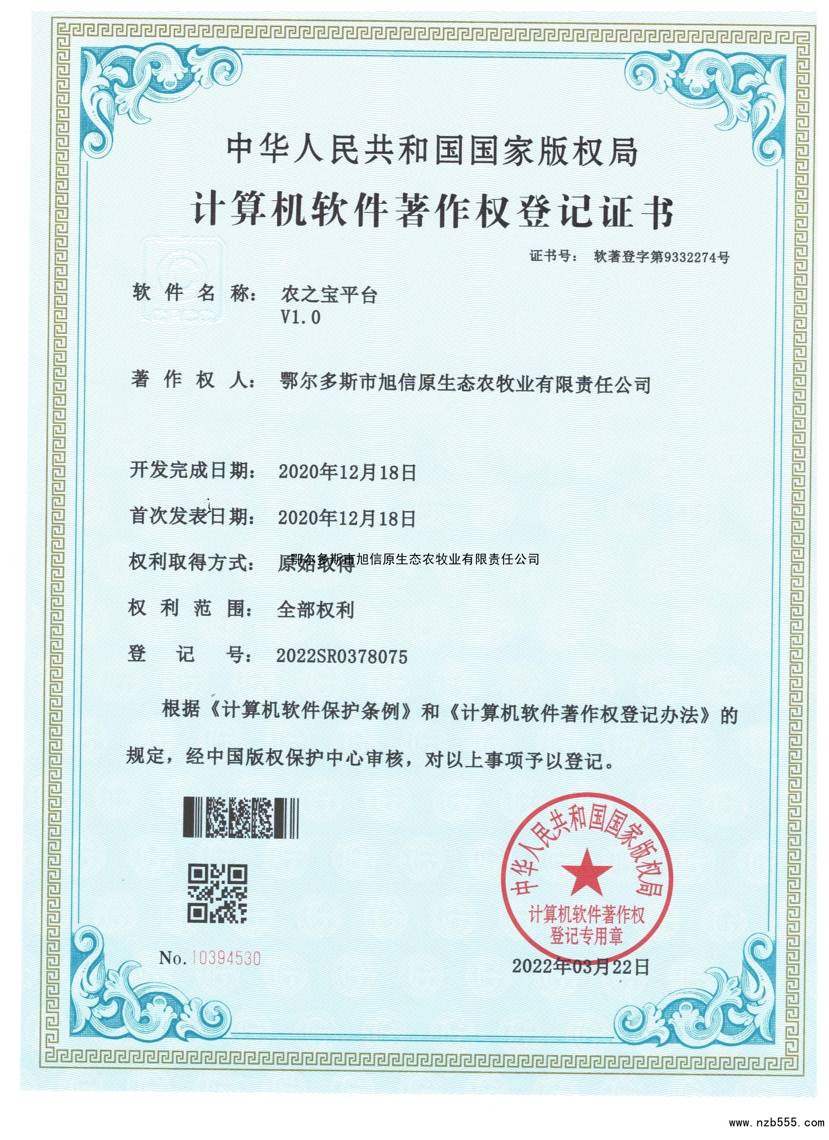 榮譽(yù)資質(zhì) 計算機(jī)軟件著作權(quán)登記證書 農(nóng)之寶平臺