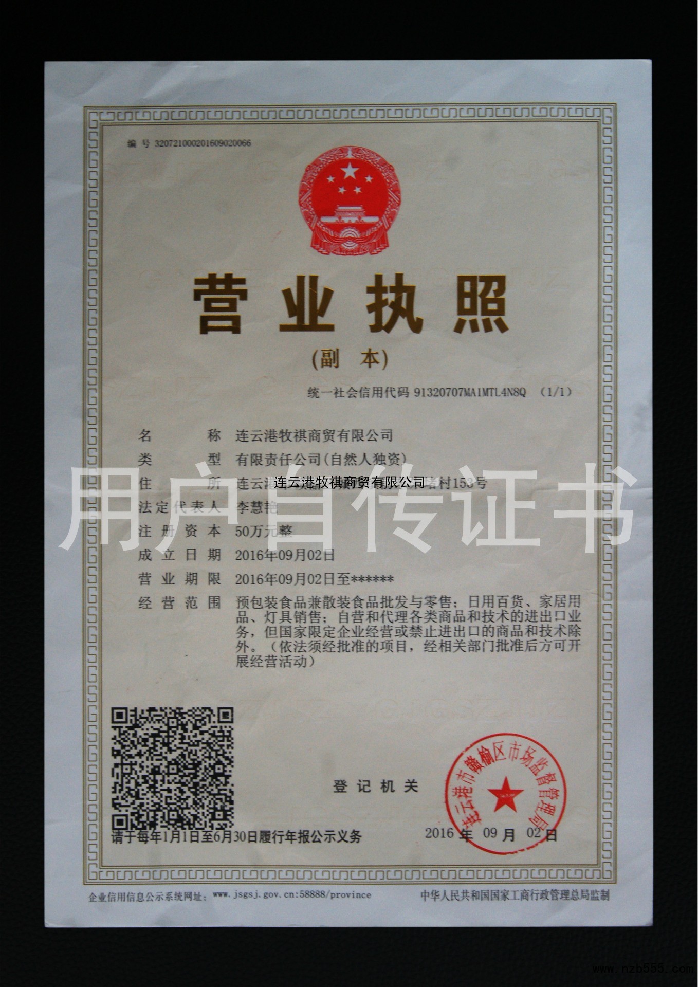 | 發(fā)證機(jī)構(gòu): | 連云港市贛榆區(qū)市場(chǎng)監(jiān)督管理局 | 發(fā)證時(shí)間 : | 2016-09-02 |