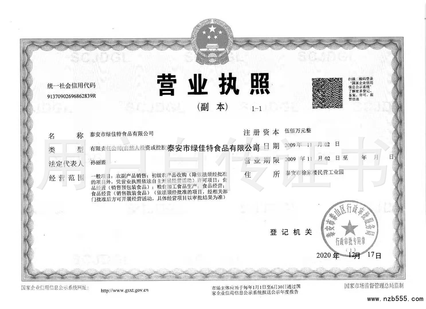 | 發(fā)證機(jī)構(gòu): | 泰安市泰山區(qū)行政審批服務(wù)局 | 發(fā)證時(shí)間 : | 2020-12-17 |