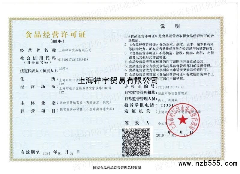 | 發(fā)證機(jī)構(gòu): | 上海市松江區(qū)市場(chǎng)監(jiān)督管理局 | 發(fā)證時(shí)間 : | 2019-01-08 |