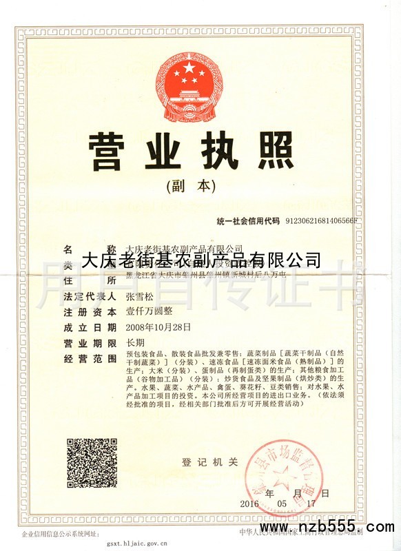 | 發(fā)證機(jī)構(gòu): | 肇州縣市場(chǎng)監(jiān)督管理局 | 發(fā)證時(shí)間 : | 2016-05-17 |