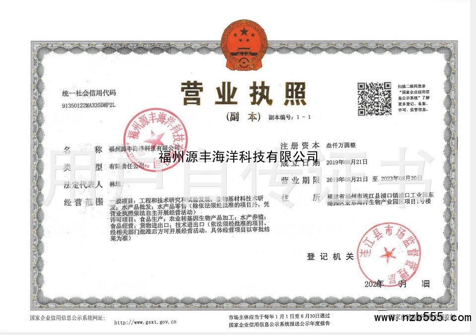 | 發(fā)證機(jī)構(gòu): | 連江縣市場(chǎng)監(jiān)督管理局 | 發(fā)證時(shí)間 : | 2020-06-11 |