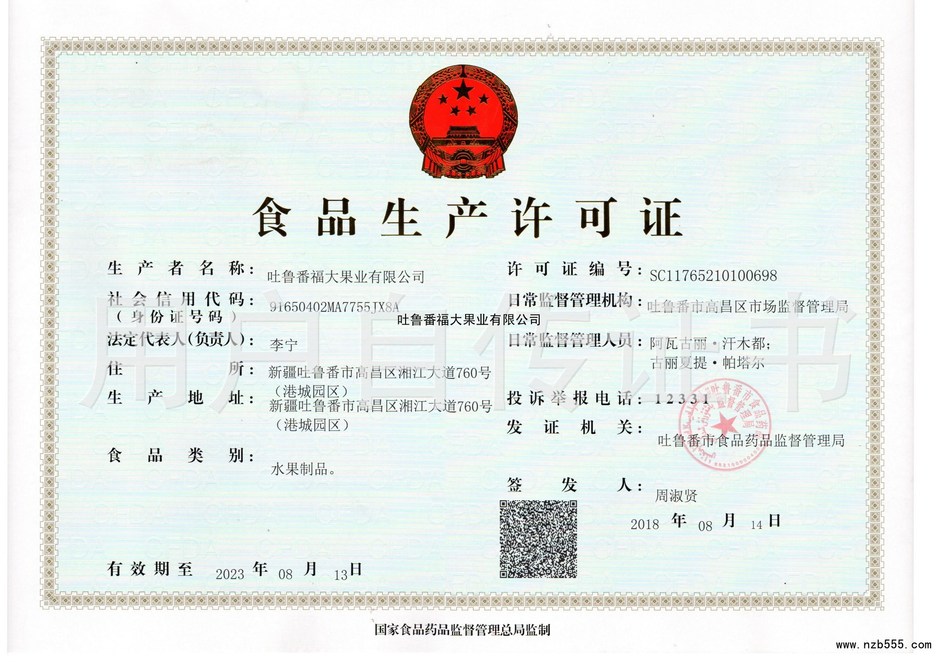 食品生產許可證(除乳制品、嬰幼兒配方乳粉、酒之外的生產許可證)