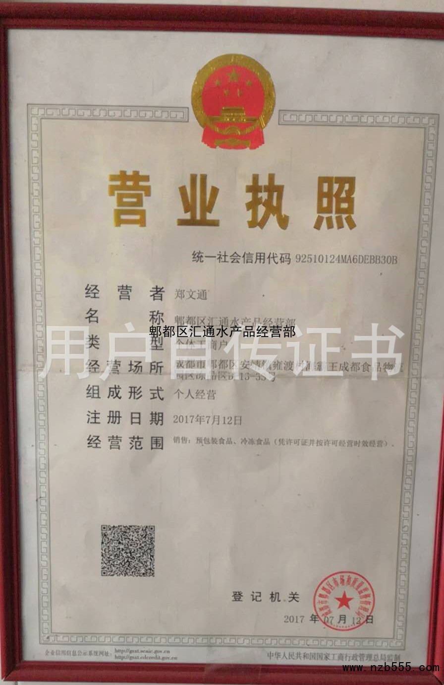 榮譽(yù)資質(zhì) 郫都區(qū)匯通水產(chǎn)品經(jīng)營(yíng)部