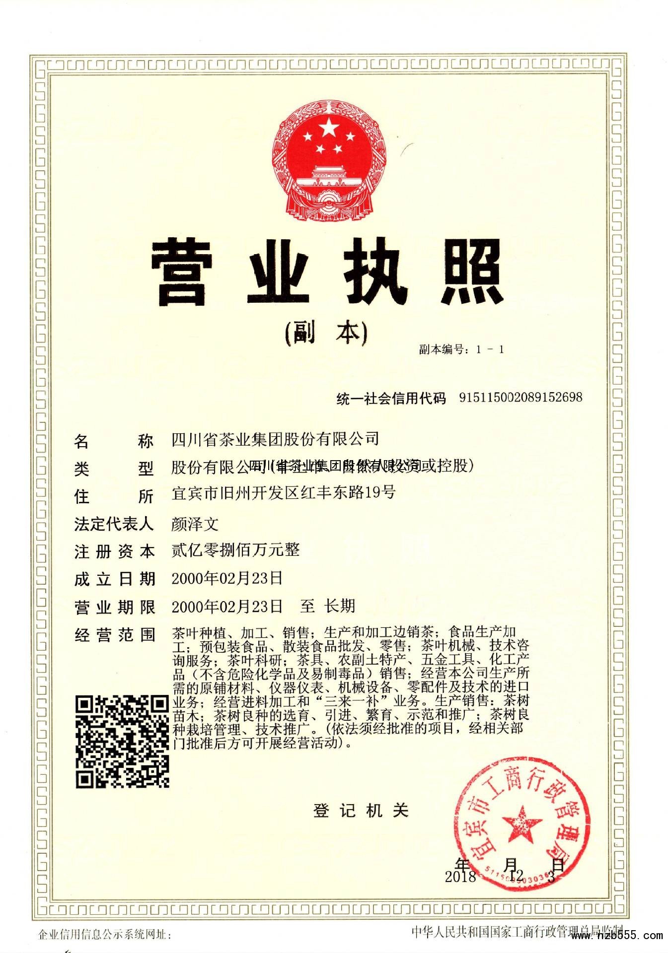 | 發(fā)證機(jī)構(gòu): | 宜賓市工商行政管理局 | 發(fā)證時(shí)間 : | 2018-12-03 |