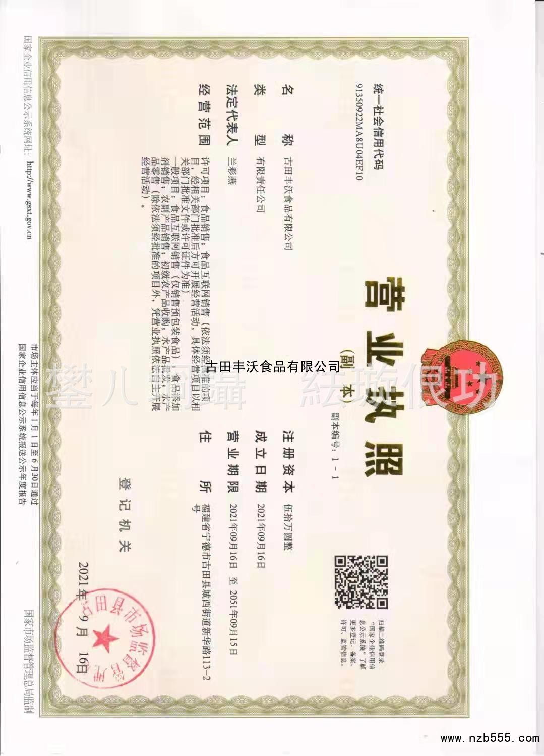 榮譽(yù)資質(zhì) 古田豐沃食品有限公司