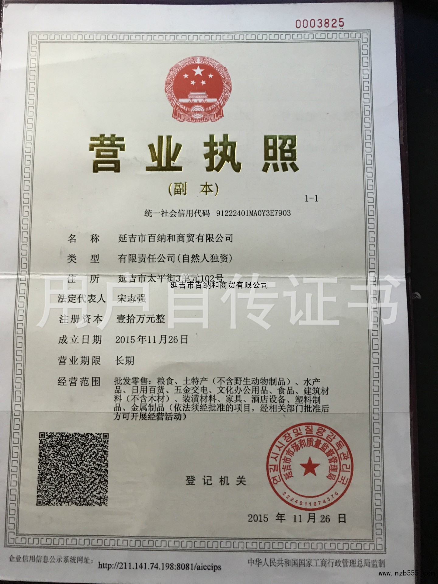 延吉市百納和商貿有限公司