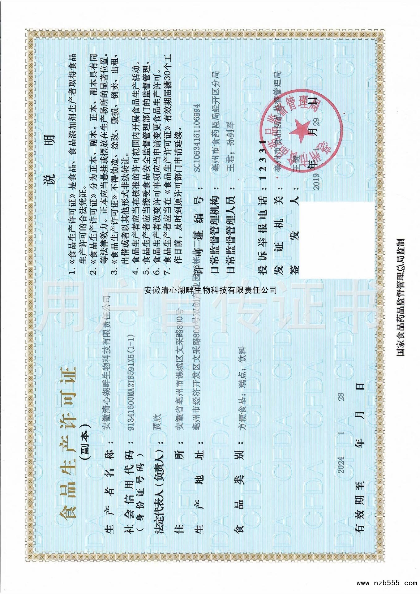 食品生產許可證(除乳制品、嬰幼兒配方乳粉、酒之外的生產許可證)