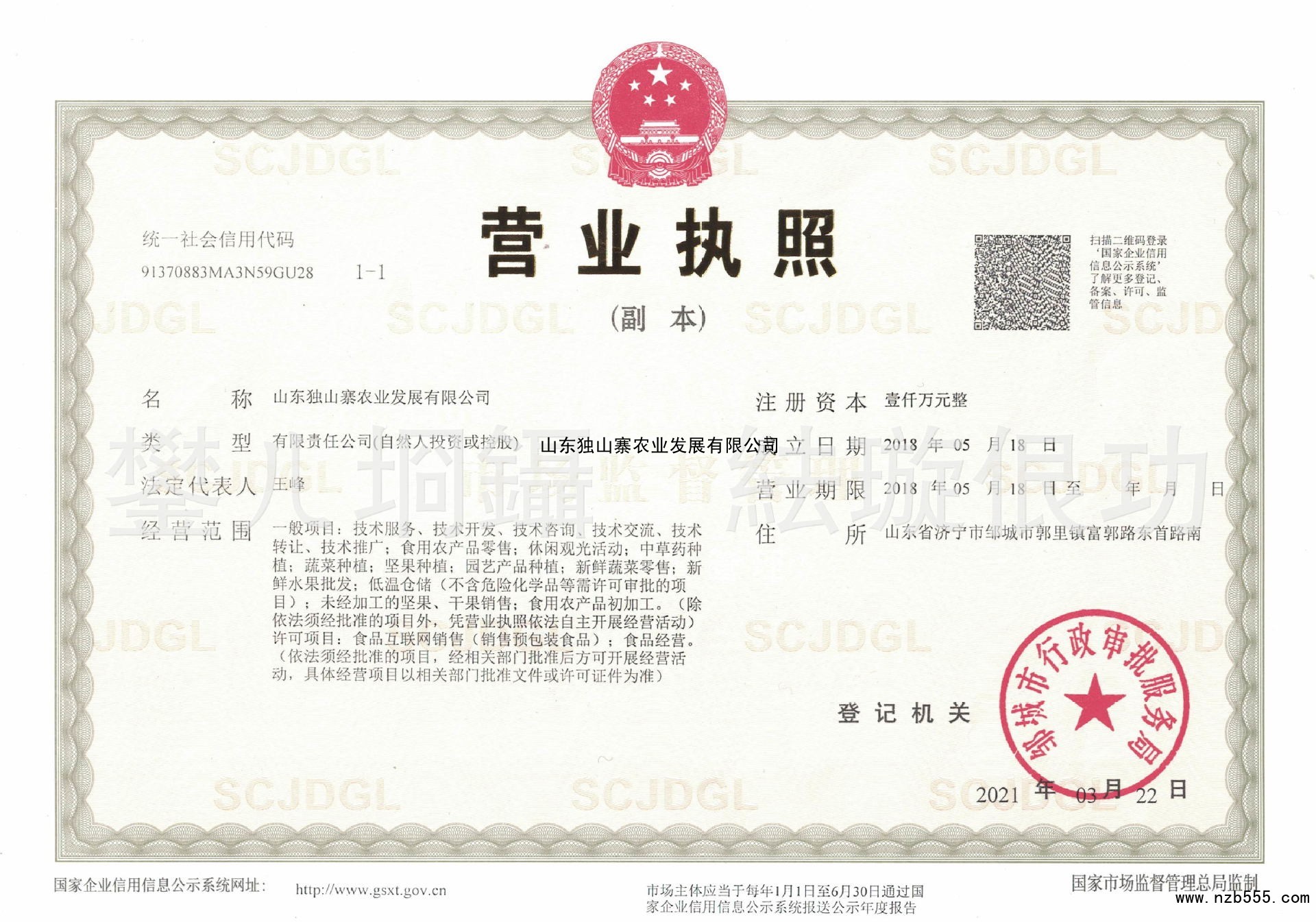 榮譽(yù)資質(zhì) 山東獨(dú)山寨農(nóng)業(yè)發(fā)展有限公司