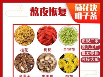 決明子、金銀花、菊花、牛蒡根、枸杞、桂花