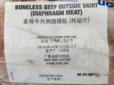 美國628廠精選藍(lán)帶外裙肉/橫膈膜冷凍去骨雪花牛排餐廳酒店用品
