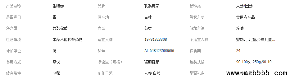 白參長白山生曬參全須干人參整支半斤禮盒裝250g手選貨送禮規格全