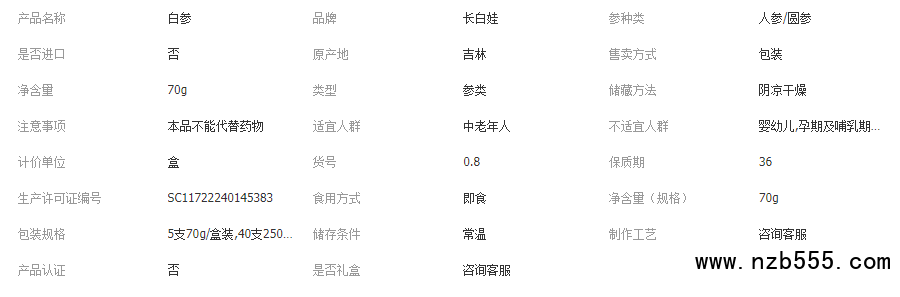 長白山人參吉林特產白